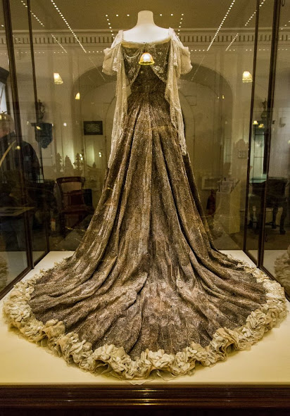Az ünnepi öltözék természetesen - mint a korszakban a legelőkelőbbek számára megszokottan - a Worth-divatház alkotása volt. Azonban az estélyi a többi Worth ruhához képest indiai mesterek keze alatt készült az úgynevezett zardozi hímzéstechnikával. A zardozi egy olyan közel-keleti arany-ezüstszálas hímzést jelent, amellyel a helyi, indiai nemesek öltözékeit díszítették, tették a lehető legelőkelőbbé.
